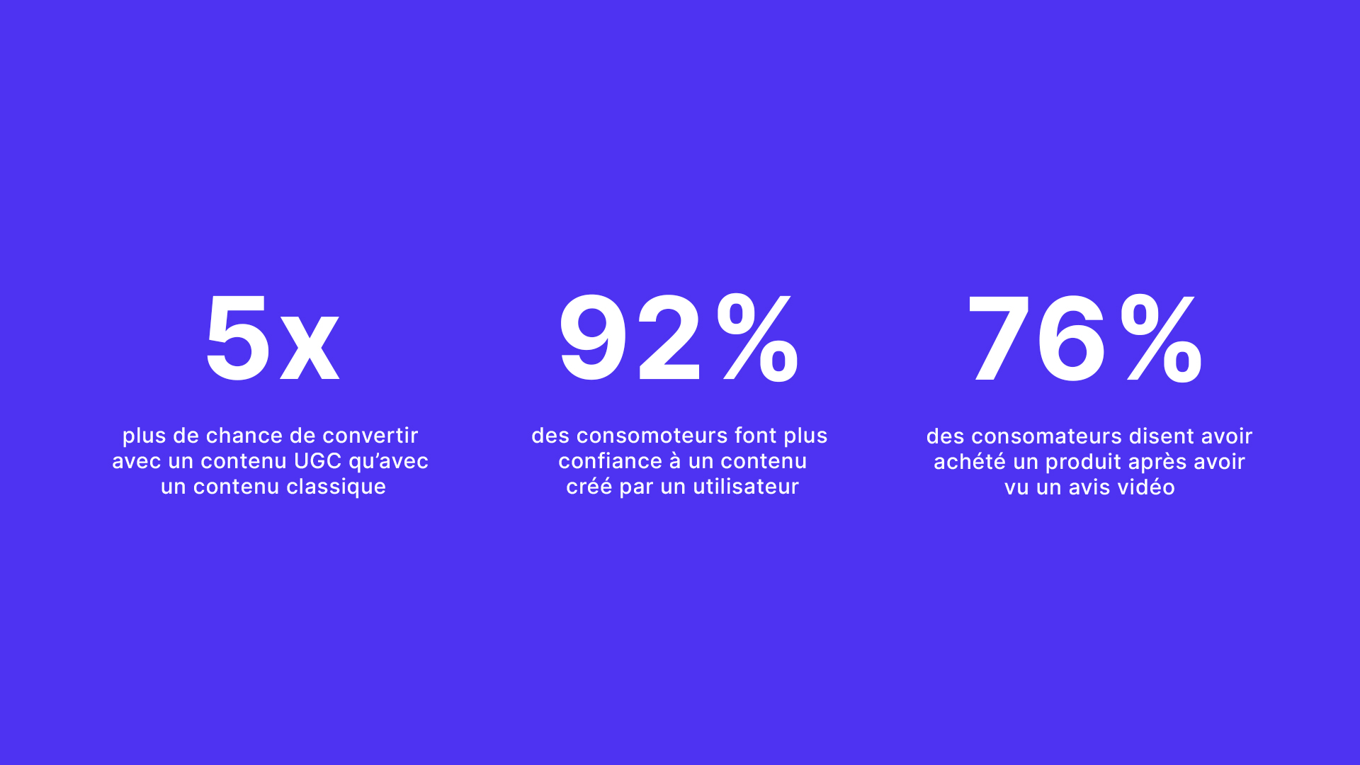 Oui. Vous pouvez assembler plusieurs contenus UGC dans une même création. Cela vous permet de tester différents angles et messages sans contrainte.